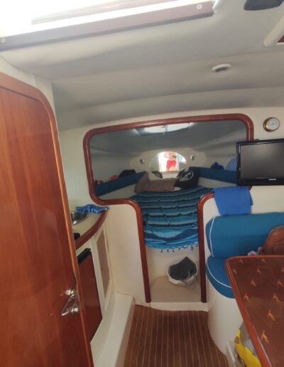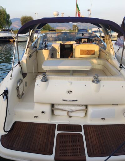 Altoparlanti, Bimini, Cappottina, Copripozzetto, Cuscineria completa, Giubbetti di salvataggio, Pavimento interno in legno, Prese interne 12v, Prese interne 220v, Radio AM/FM, WC marino elettrico