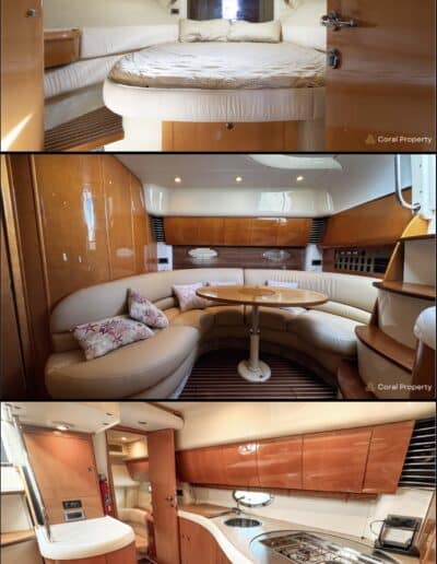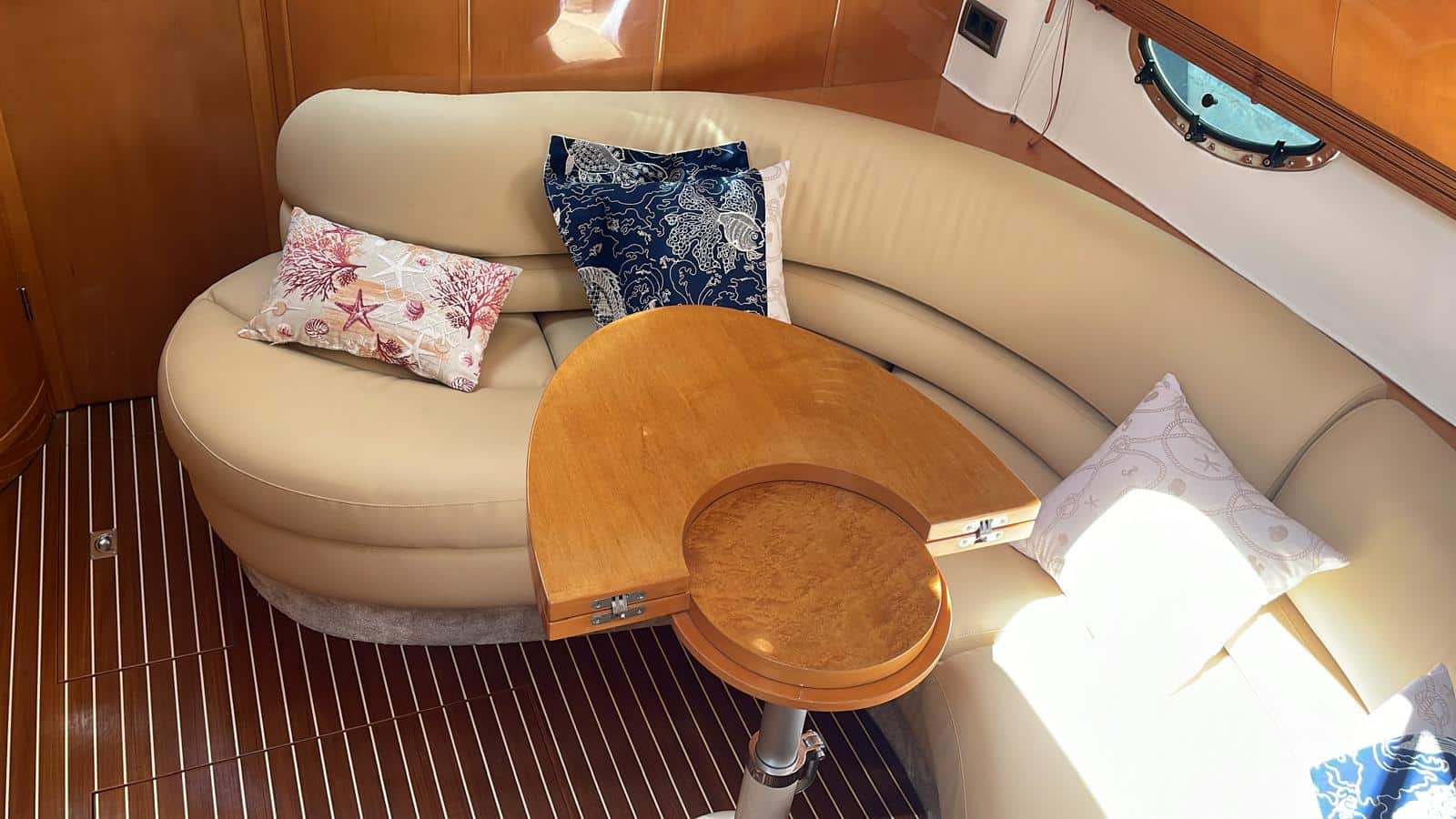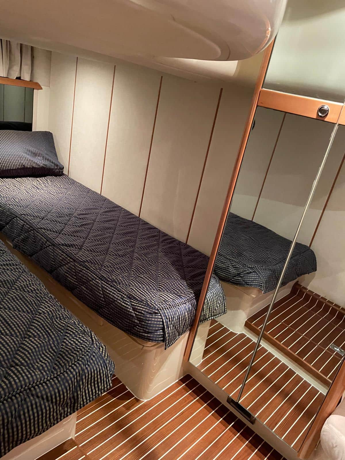 2 cabine (cabina matrimoniale di prua con bagno privato, cabina con 2 letti singoli e divanetto)