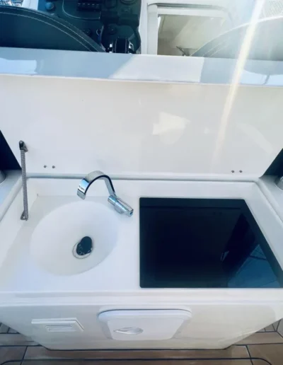 4 batterie AGM 180 Ah ognuna (2 per i servizi e 2 per i motori con staccabatterie separati più parallelo