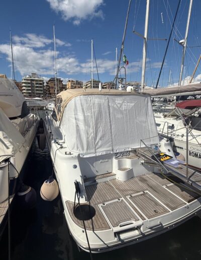 Imbarcazione da crociera con ampi spazi sia esterni ma soprattutto interni, infatti è una delle poche imbarcazioni su questa dimensione ad avere 3 cabine doppie pur mantenendo un'ampia dinette e dei comodi bagni.