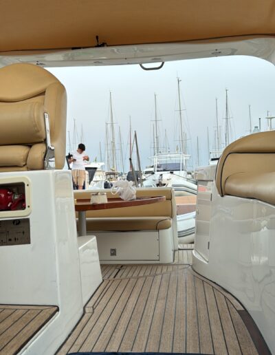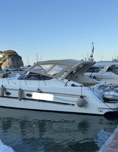 Imbarcazione con tendalini nuovi, plancia strumenti nuova e piedi revisionati