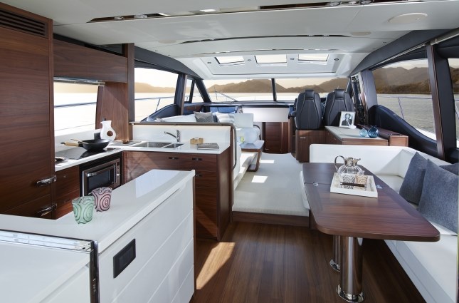 Con un profilo esterno elegante dallo stile grafico proprio del cantiere inglese Princess Yacht , la S65 offre un perfetto equilibrio tra forma dinamica e prestazioni mozzafiato.