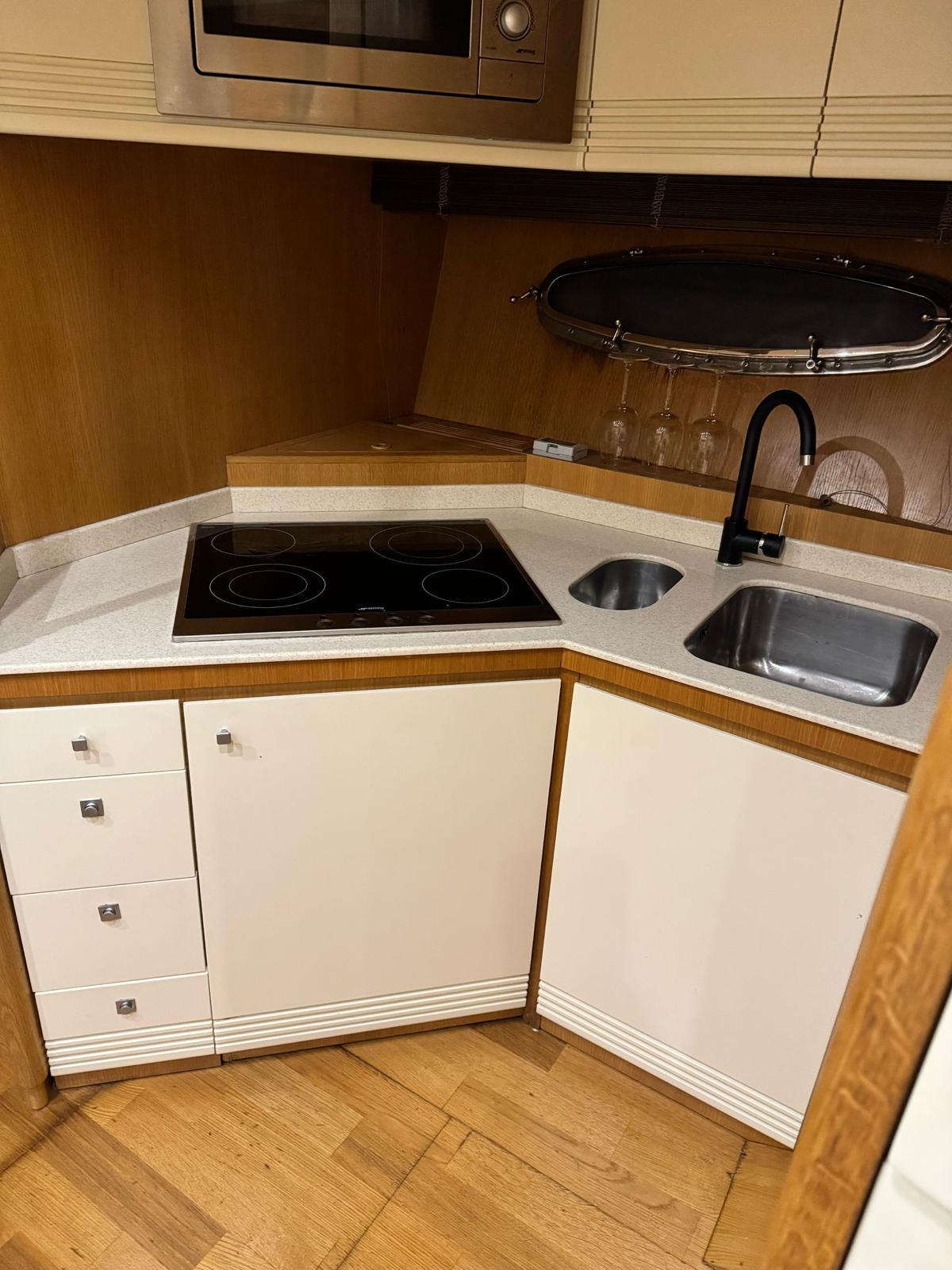 Cucina interna completa con lavabo, piano ad induzione e frigorifero